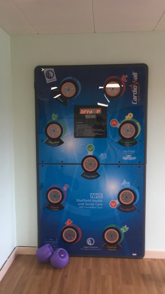 My favourite part of the gym was a piece of equipment called the Cardio Wall, a bank of flashing lights which you punched with spherical handheld weights. You could program the wall for different timed sequences that tested your speed and reflexes. Next to the wall was a white board where we could write our best scores for each sequence, encouraging us to beat each other and our own previous times. It was a great incentive and I’d love to have another go on one. Ideally one not in a psychiatric ward gym, though.
